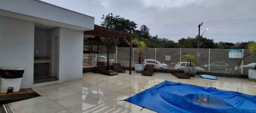 Excelente oportunidade! Apartamento com 2 dormitórios, sala e cozinha integradas, banheiro com box de vidro, piso em porcelanato em todos os ambientes e espera para ar-condicionado Split na sala. Possui uma vaga de garagem.