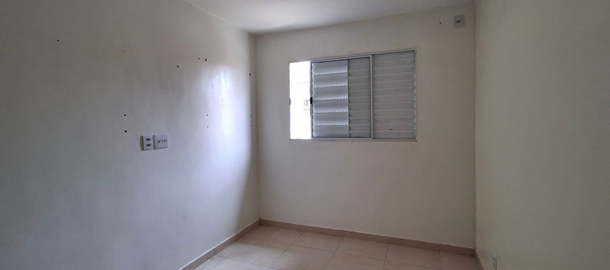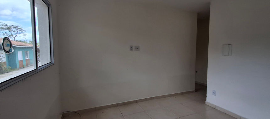 Casa térrea de 2 dormitórios, sala e cozinha integradas, banheiro, área de serviço, Pátio na lateral uma vaga de carro, localizada em pequeno condomínio.