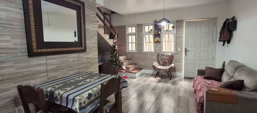 Sobrado à venda, com 2 dormitórios amplos, sala e cozinha integradas em conceito aberto, proporcionando ambiente arejado e moderno. Conta com banheiro social no andar superior e lavabo no térreo, trazendo praticidade para o dia a dia. Na área externa, possui um espaço com churrasqueira, perfeito para momentos de lazer e convivência. Dispõe de 1 vaga coberta para carro.